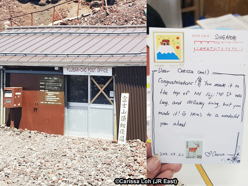Climbing alone, you have more time for yourself, and can go completely at your own pace without waiting for someone, or making someone wait for you. It also gives you the freedom to think in peace, reflect on your life and learn a bit more about yourself. I saw many other solo climbers, so despite what others might think, climbing alone is not strange. Since climbing Mount Fuji, I have gone on solo climbing/hiking trips every year. Climbing is not a race, so there is nothing wrong with taking your time to enjoy some me time with the scenery. As a memento of this climb, I sent myself a postcard from the top of Mount Fuji. It was waiting for me when I got back to Singapore!