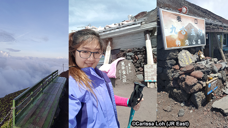 Bench at 7th Station (3,010m). Outside 9th Station (3,460m). Mountain hut at 9.5th Station (3,590m). (Image credit: JR East / Carissa Loh)