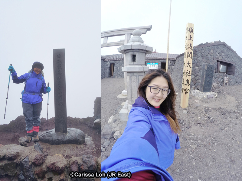 At the Kengamine peak 3,776m (left). At the summit shrine (right). (Image credit: JR East / Carissa Loh)