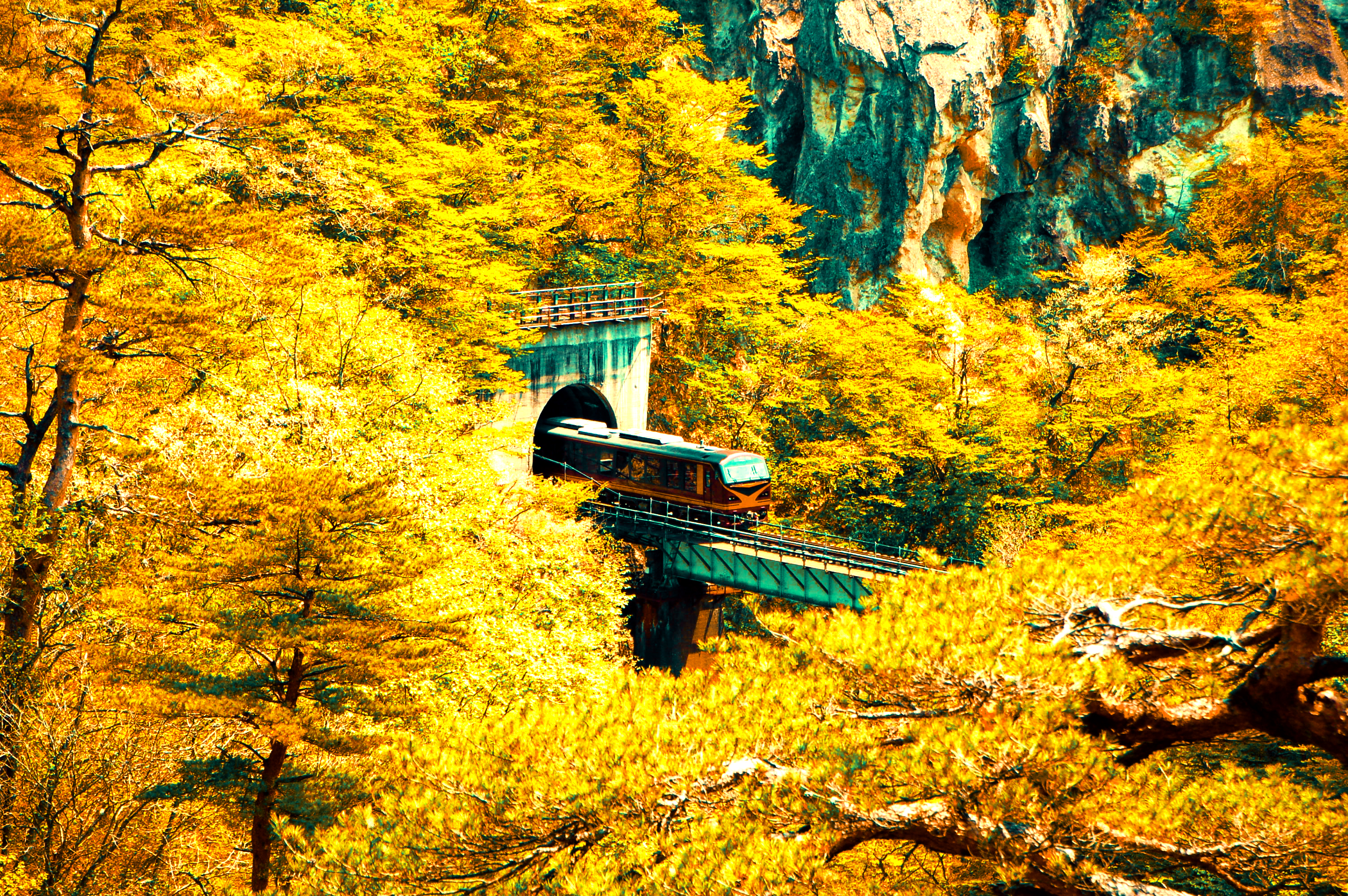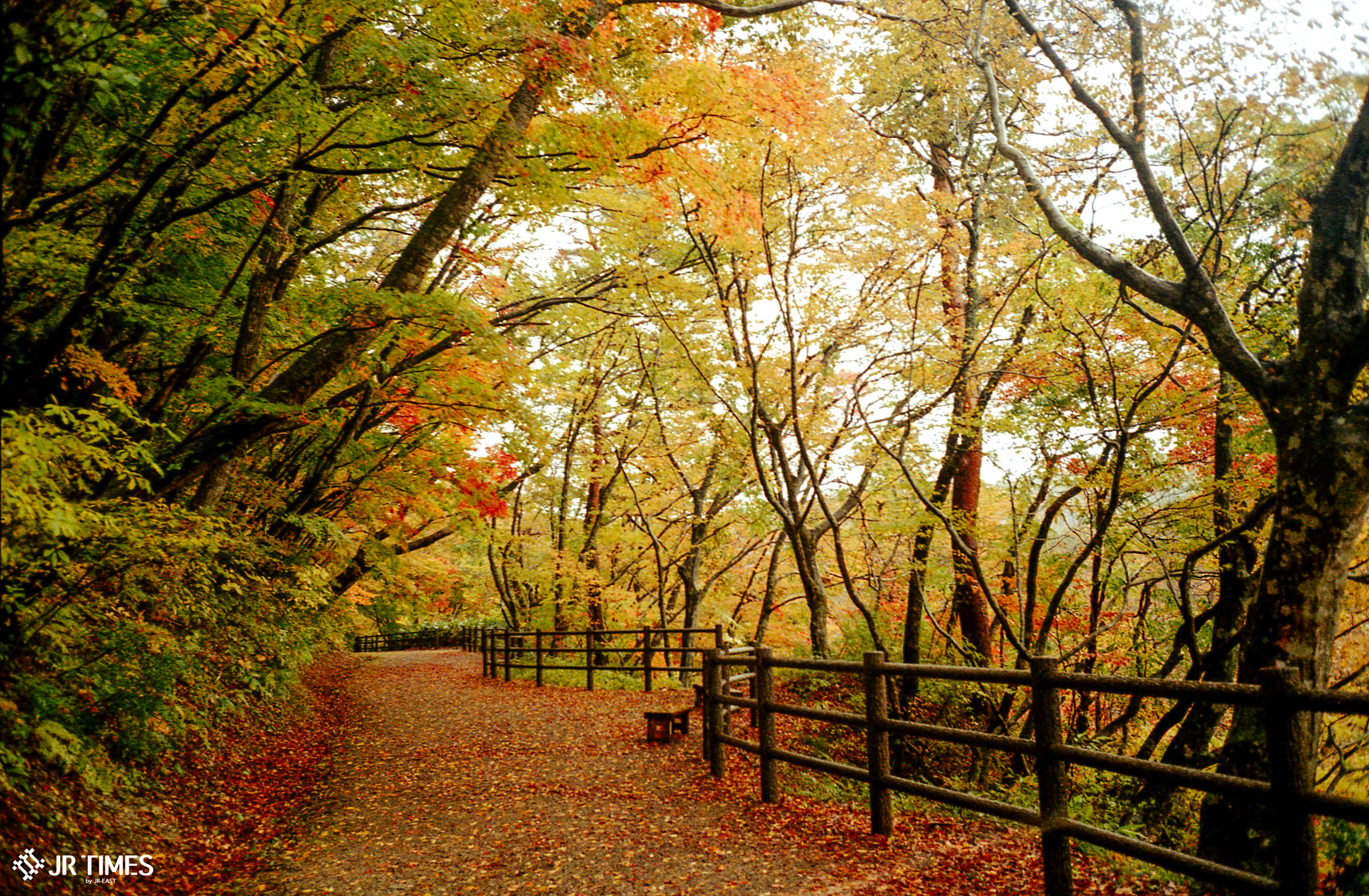 Resort Minori standing out in the golden hues of autumn leaves. (Image credit: JR East)