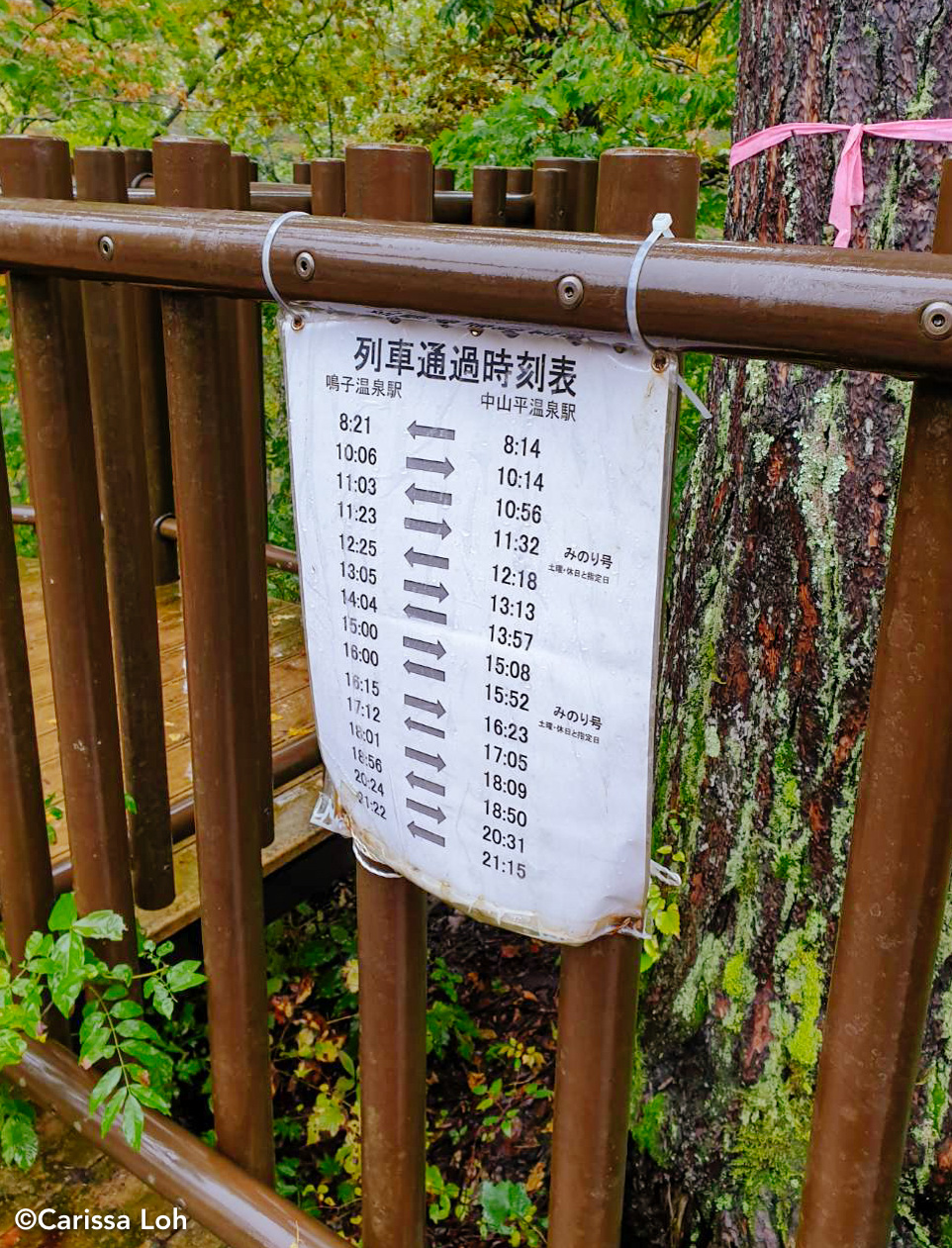 Schedule of the Riku-East Line train (including the Resort Minori) passing through between Naruko-Onsen Station and Nakayamadaira-Onsen Station. (Image credit: Carissa Loh)