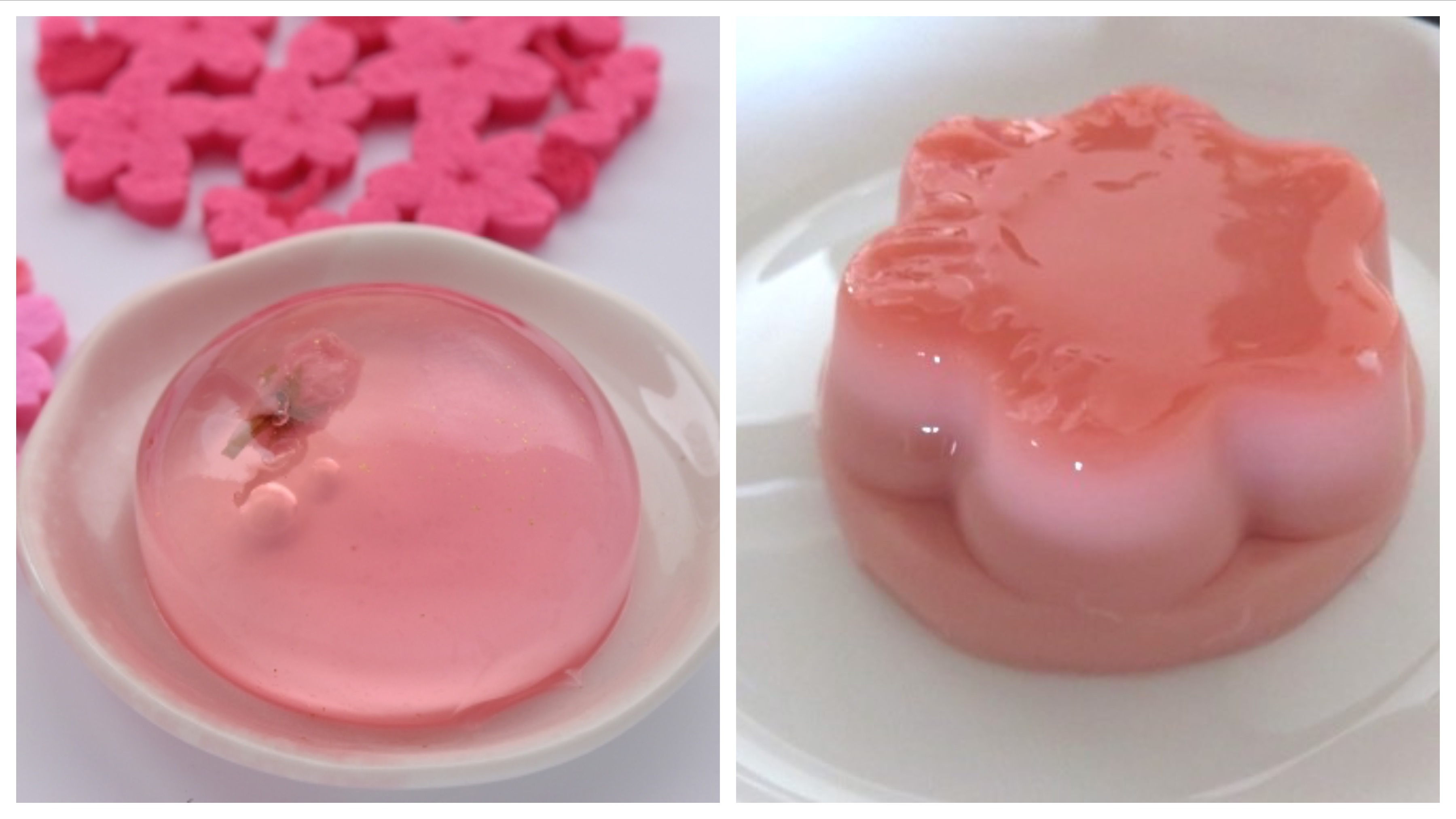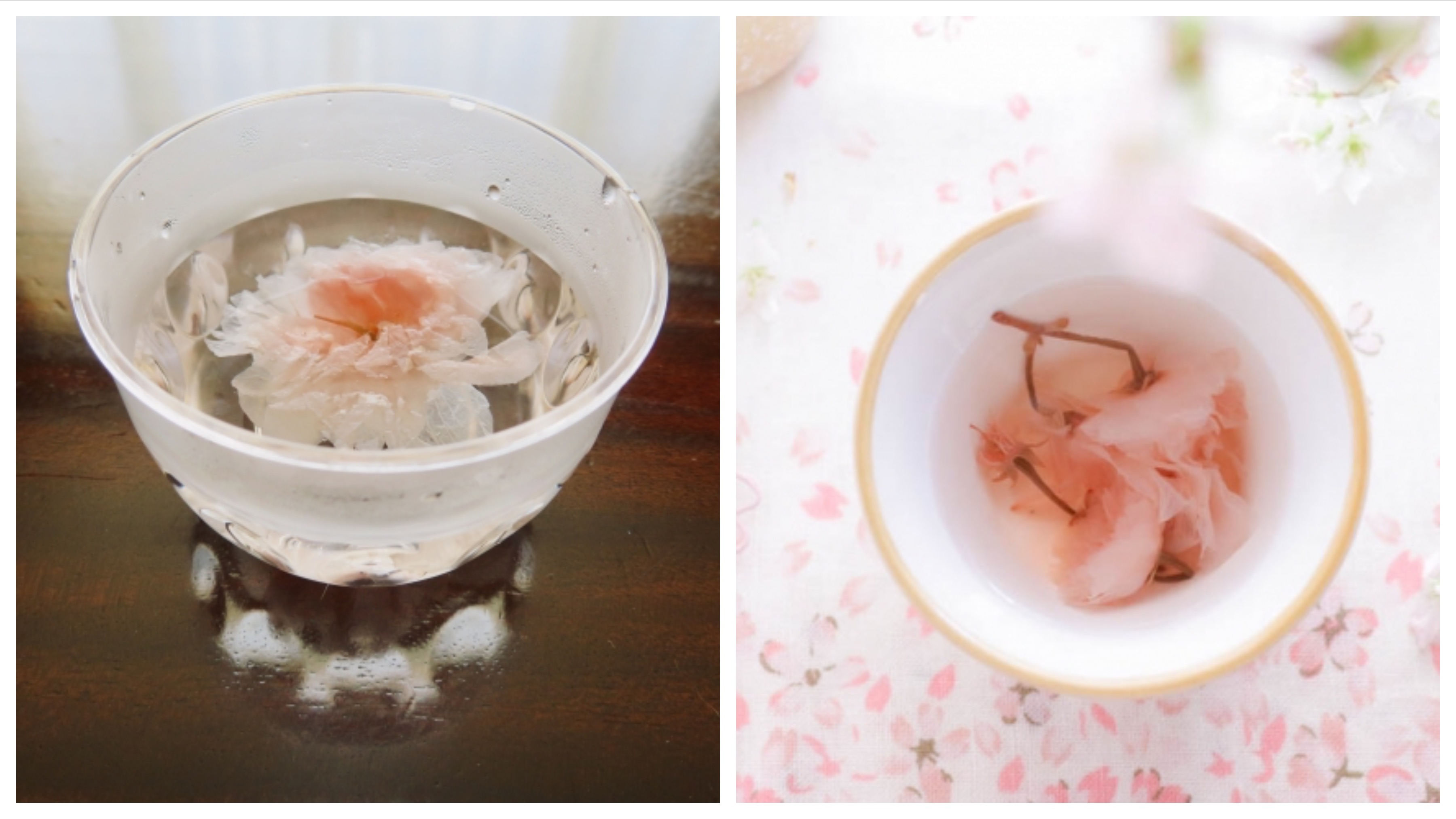 After that yummy sakura-onigiri, you might be feeling thirsty. Dried sakura blossoms are used in tea as well, sometimes in combination with kombu (昆布 kelp) in a fresh but salted tea. The floating flowers provide tea enthusiasts with a dreamy atmosphere in their cup. And the marriage of the salty sakura petals with a little sweet Japanese cake? That is just perfection.
