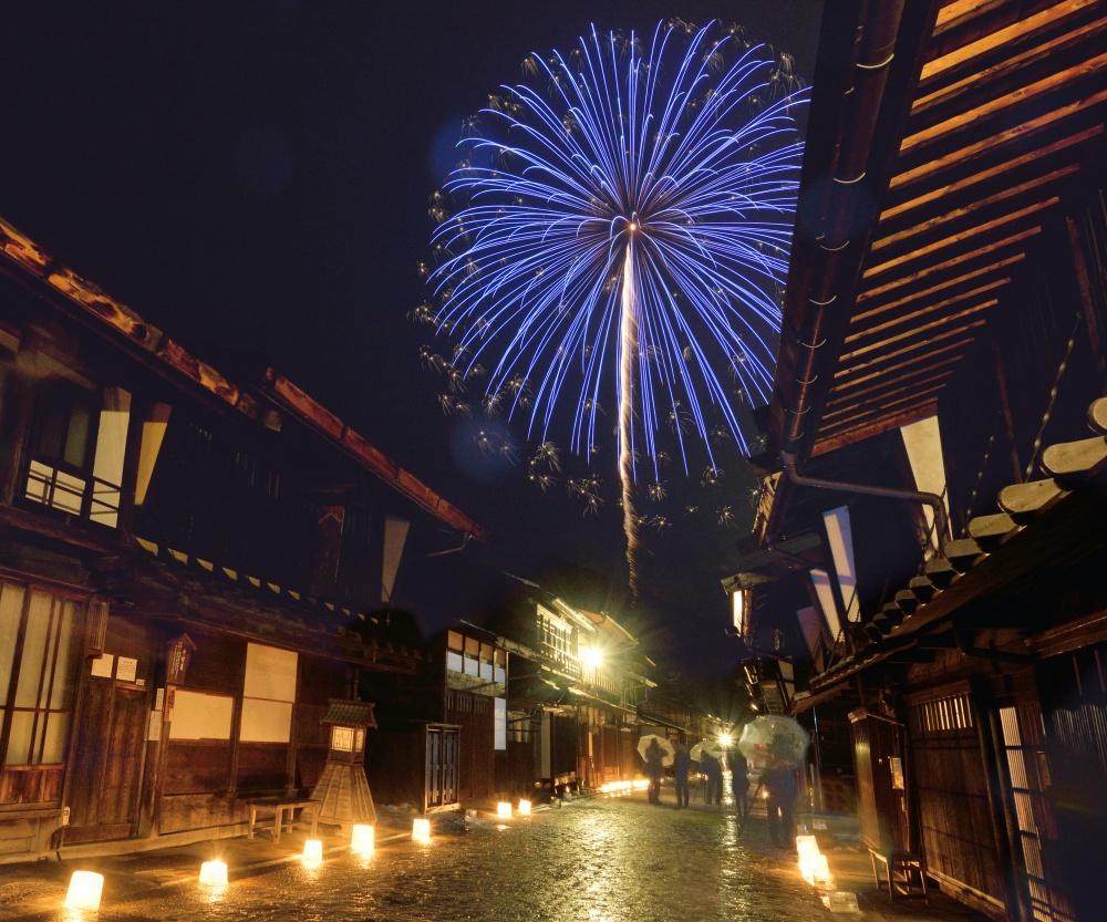 Ice candles and fireworks at Naraijuku. (Image credit: 木曽観光連盟)