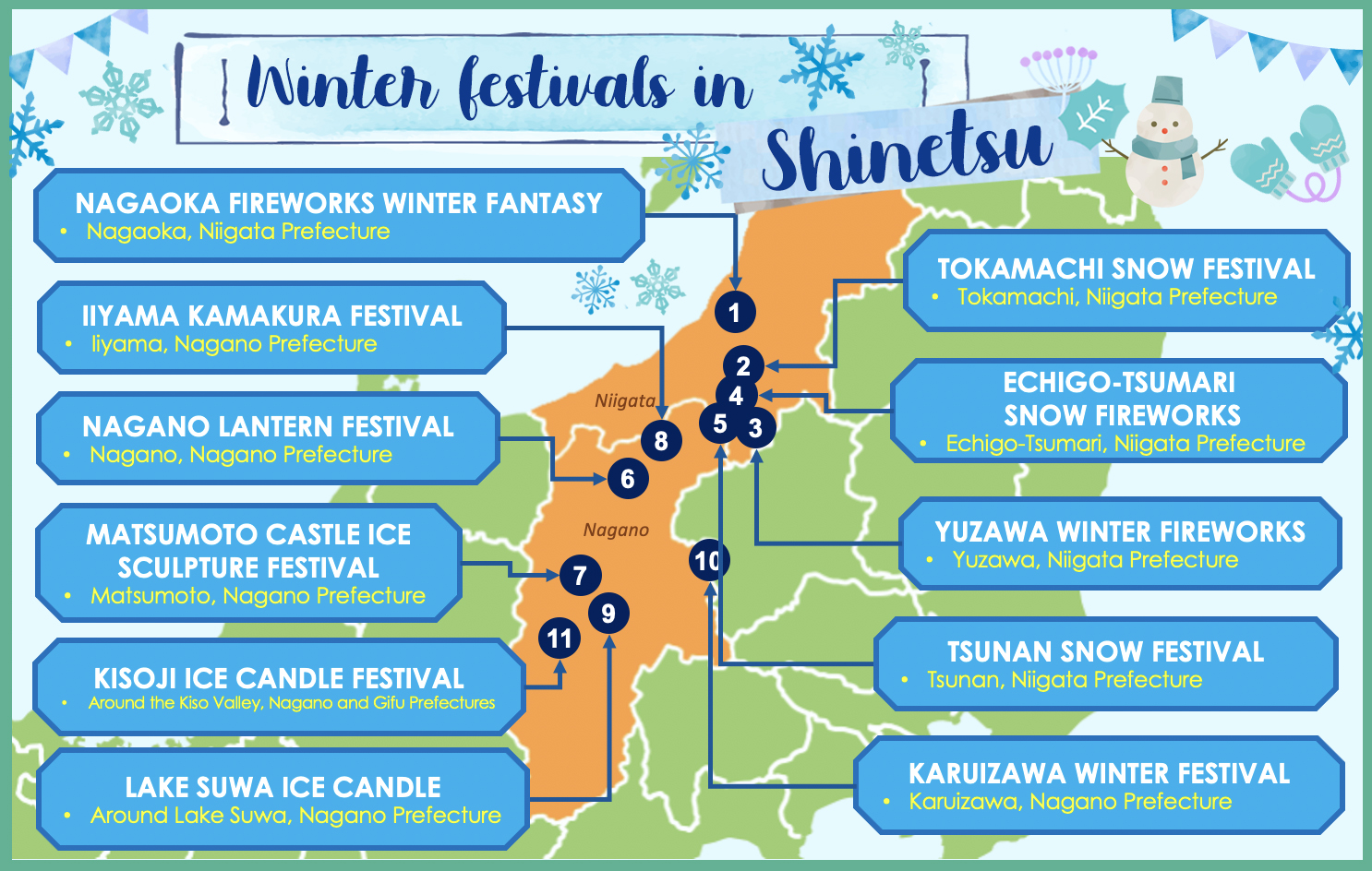 The Shinetsu region is abundant in snow, and as seen from their colourful and creative festivals, winter is a beautiful season to visit. If you are thinking of visiting some of these wonderful winter festivals, check out the JR EAST PASS (Nagano, Niigata area), which can save you a lot on rail travel.