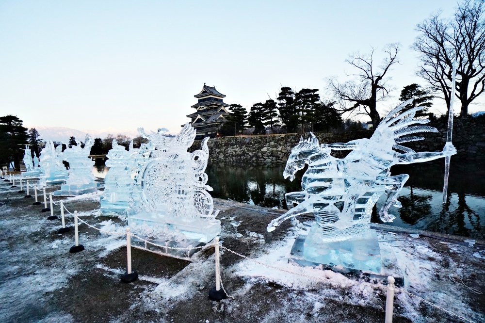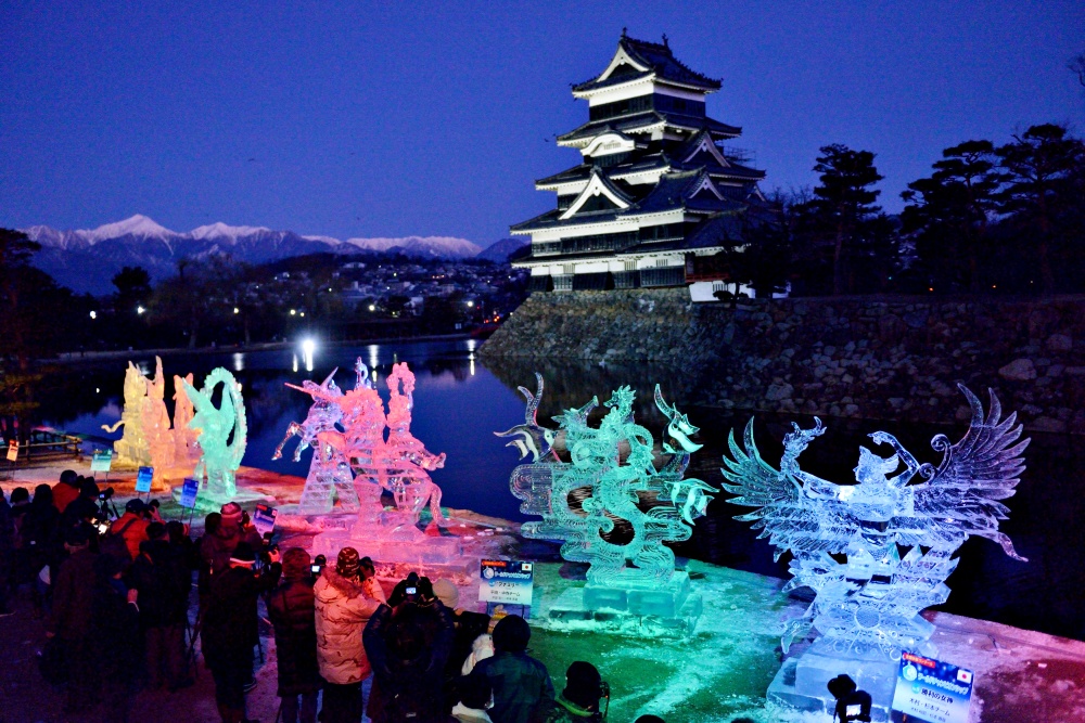 Usually held over a weekend in late January or early February, the Matsumoto Castle Ice Sculpture Festival is not just a festival, but also a national competition, where top ice sculptors from all over Japan gather at Matsumoto to carve stunning ice creations.