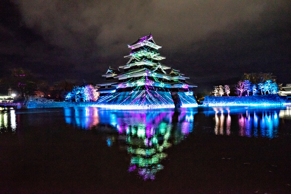 Colourful night illumination of Matsumoto Castle. (Image credit: 松本市観光温泉課)