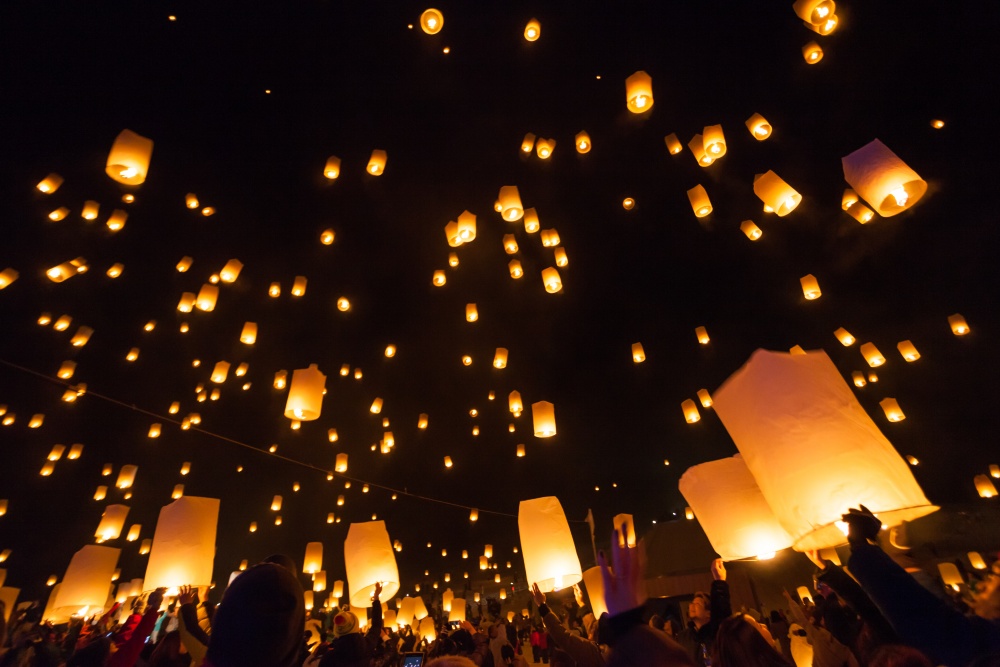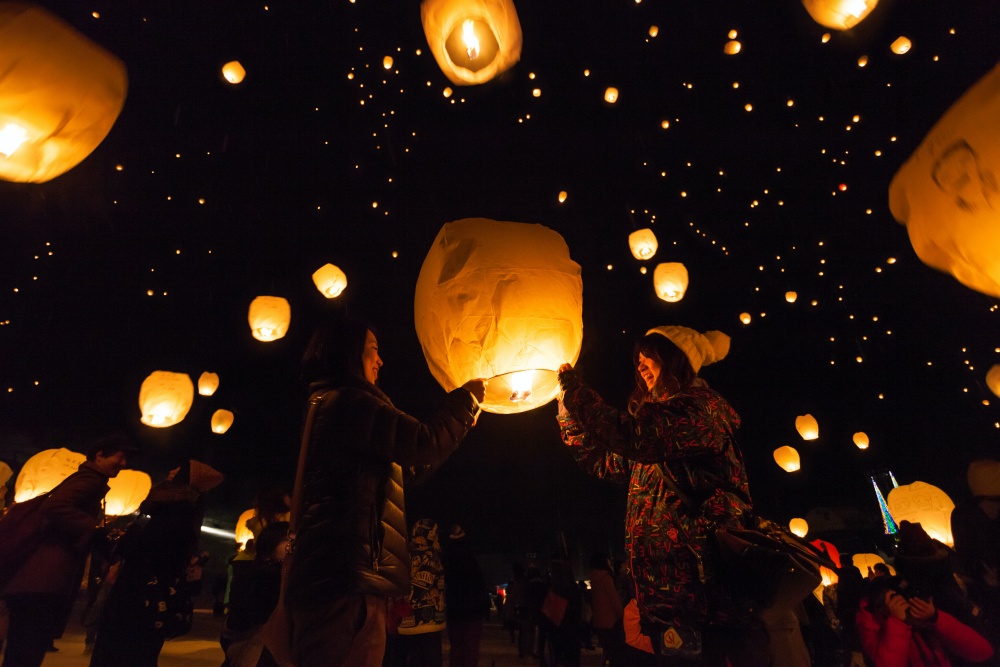 Sky lanterns being set off at the Tsunan Snow Festival. (Image credit: 新潟県観光協会)