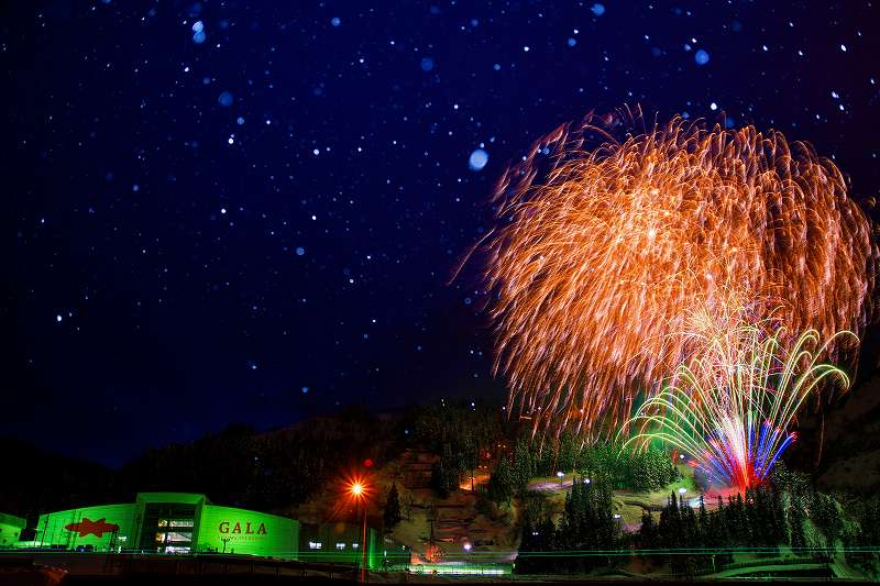 Many ski resorts have accommodations and cater to overnight visitors, so their fireworks shows usually start after dinner time, between 20:00 and 21:00. However, for visitors who are not staying overnight at a ski resort but would still like to enjoy fireworks, they can check out GALA Yuzawa Snow Resort, the only ski resort in the world with its own shinkansen (新幹線 bullet train) station.