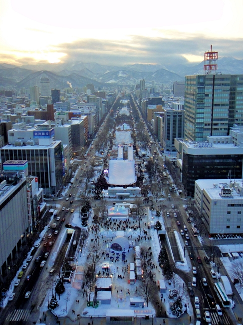 The Ōdori site of the Sapporo Snow Festival as seen from the viewing deck of the Sapporo TV Tower. (Image credit: Kevin Koh)