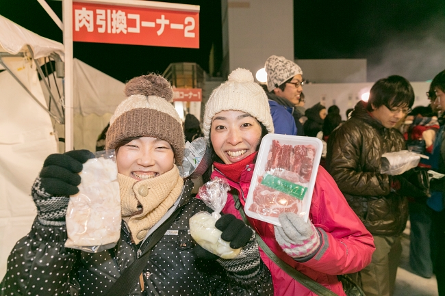Though the price for the entrance ticket to the festival may seem a little steep at ¥2,000 yen, it does come with 300g of cut meat, as well as Kitami’s famed onions and even a souvenir of pre-packaged soup mix, making it quite worthwhile. In addition, included in the price is all-you-can-drink shōchū oyuwari (焼酎お湯割り), shochu mixed with hot water, perfect for the frigid temperatures and guaranteed to warm you up from the inside.