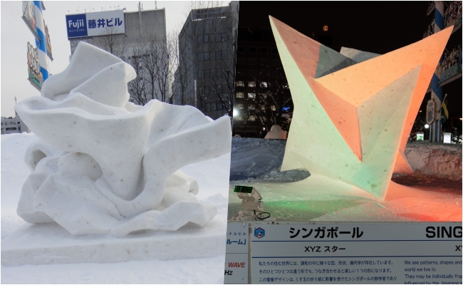 There is also a ski jump slope where one can watch jumpers compete in various events such as ski jumping and snowboarding, as well as a whole assortment of snow sculptures in all sizes made by teams not only from Japan, but from various countries all over the world as well. Imagine my surprise when I saw a snow sculpture made by a team from Singapore! (I wonder where they practised, and what they used in place of snow…)