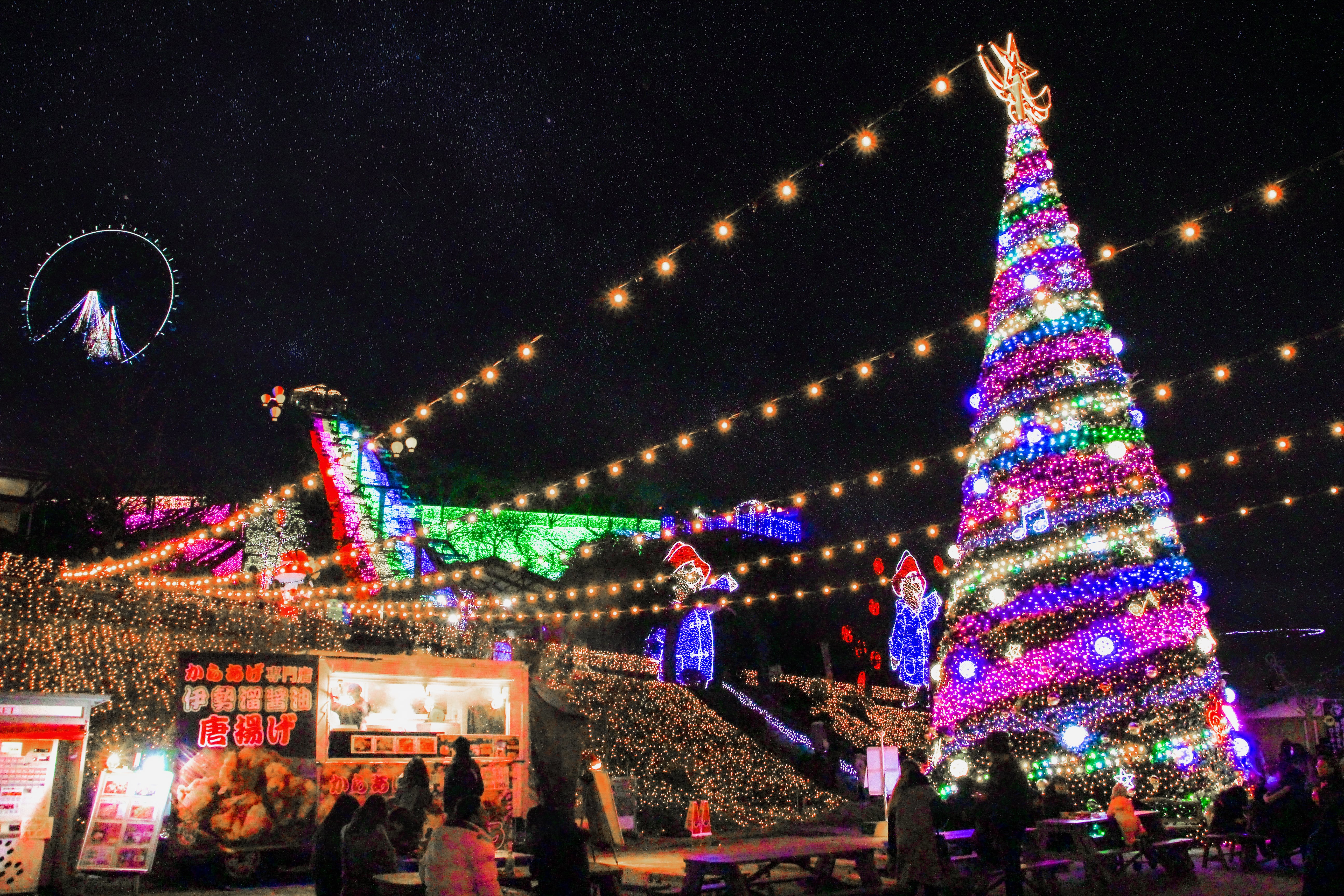 One of the many unique features that comes with Japanese Christmas—besides Kentucky Fried Chicken and Christmas Cake—are the beautiful Winter Illuminations (冬のイルミネーション Fuyu no irumineshon) which spring up across the country. Constructing large scale, intensely colourful light shows and events have become a modern Japanese art form in its own right, with various theme parks and locales continuously striving to deliver increasingly dazzling displays every year. Major tourist hubs such as Tokyo Disneyland or Huis Ten Bosch in Nagasaki make it part of their annual calendar to host extravagant Christmas Illumination events, which go on for the entirety of the winter season.