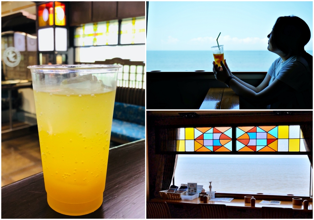 เครื่องดื่มขึ้นชื่อของบาร์ A-TRAIN BAR ที่คุณต้องลองคือ ไฮบอล (530เยน) ที่ทำจากผลิตภัณฑ์ท้องถิ่น เดะโคะปง (dekopon デコポン) ส้มชนิดหนึ่งจากคุมาโมโตะ และจะมีอะไรดีไปกว่าการเพลิดเพลินวิวที่ผ่านไปด้วยการจิบเครื่องดื่มและมองไปข้างนอกกระจกกว้าง? ด้วยแสงอ่อนๆที่ส่องผ่านหน้าต่างกระจกสีและด้วยวิวทิวทัศน์อันมหัศจรรย์ของน้ำทะเลที่ระยิบระยับราวกับอัญมณีแซฟไฟร์ของทะเลอะริอะเคะ เพียงแค่นั่งลง ผ่อนคลายและเพลิดเพลินไปกับการนั่งรถไฟ