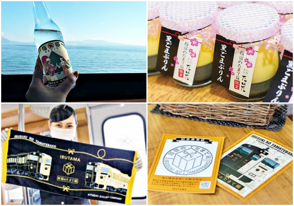 นอกจากอาหารแล้ว คุณก็สามารถซื้อของฝากสำหรับการเดินทางของคุณ ได้แก่ ผ้าขนหนูหรือสายโทรศัพท์มือถือด้วยดีไซน์รถไฟ IBUSUKI NO TAMATEBAKO ผู้โดยสารทุกท่านจะได้รับโปสการ์ดที่ระลึก ดังนั้นห้ามลืมประทับตราพิเศษที่มีเพียงบนรถไฟเท่านั้น