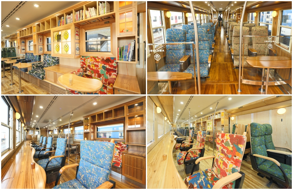 รถไฟ IBUSUKI NO TAMATEBAKO มีการตกแต่งภายในที่มีสีสันสดใส ด้วยการตกแต่งไม้และที่นั่งถูกตกแต่งด้วยผ้าและลายสีสว่างสดใส ที่นั่งจำนวนมากหันไปทางหน้าต่างเพื่อที่จะให้คุณเพลิดเพลินไปกับวิวทิวทัศน์ และรถไฟมีแม้กระทั่งมุมสบายด้วยที่นั่งโซฟาและชั้นหนังสือที่เต็มไปด้วยหนังสือเพื่อให้คุณอ่านและสนุกสนานเพลิดเพลิน