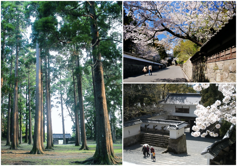 บริเวณพื้นที่ของปราสาทใกล้กับซากป้อมปราสาทหลัก (Honmaru) นั้นมีต้นสนซีดาร์โอบิ (obisugi)อายุกว่า 140 ปีแอบอยู่ที่มุมเงียบบนพื้นมอสส์ที่ดูราวกับพรมสีเขียวเข้ม มองขึ้นไปบนต้นสนซีดาร์ที่สูงและตั้งตรงราวกับจะยืดยาวไปบนท้องฟ้า บรรยากาศช่างเงียบสงบและสงบสุข สถานที่ที่เป็นดั่งขุมทรัพย์นี้มักจะถูกมองข้ามไปจากนักท่องเที่ยว ดังนั้นต้องไม่ลืมที่นี่และไม่ลืมที่จะมาเช็คที่นี่ระหว่างการท่องเที่ยวมาเยือนของคุณ