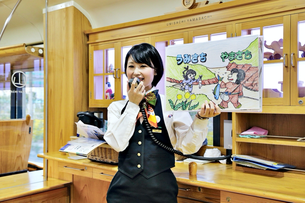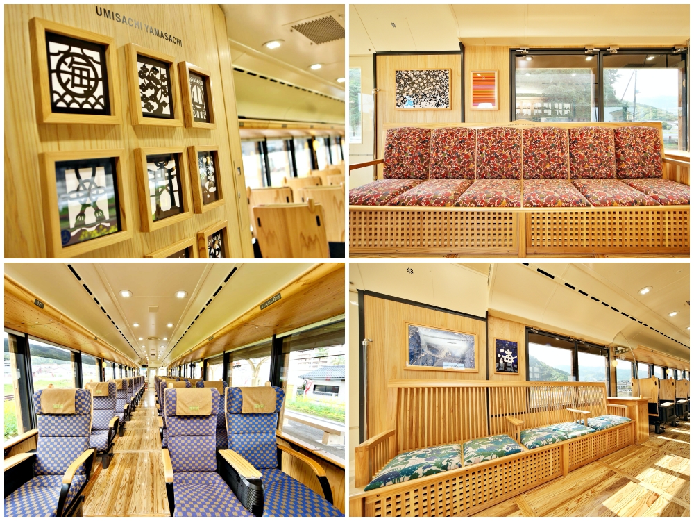 เช่นเดียวกับรถไฟ IBUSUKI NO TAMATEBAKO รถไฟขบวนนี้ก็ได้ชื่อมากจากตำนานพื้นบ้าน ชื่อUMISACHI YAMASACHI แปลตามตัวอักษรได้ว่า พรจากทะเล พรจากภูเขา และจริงตามชื่อ รถไฟขบวนนี้จะพาคุณสนุกสนานเพลิดเพลินไปกับวิวทิวทัศน์ที่มีเสน่ห์ของทะเลและภูเขา