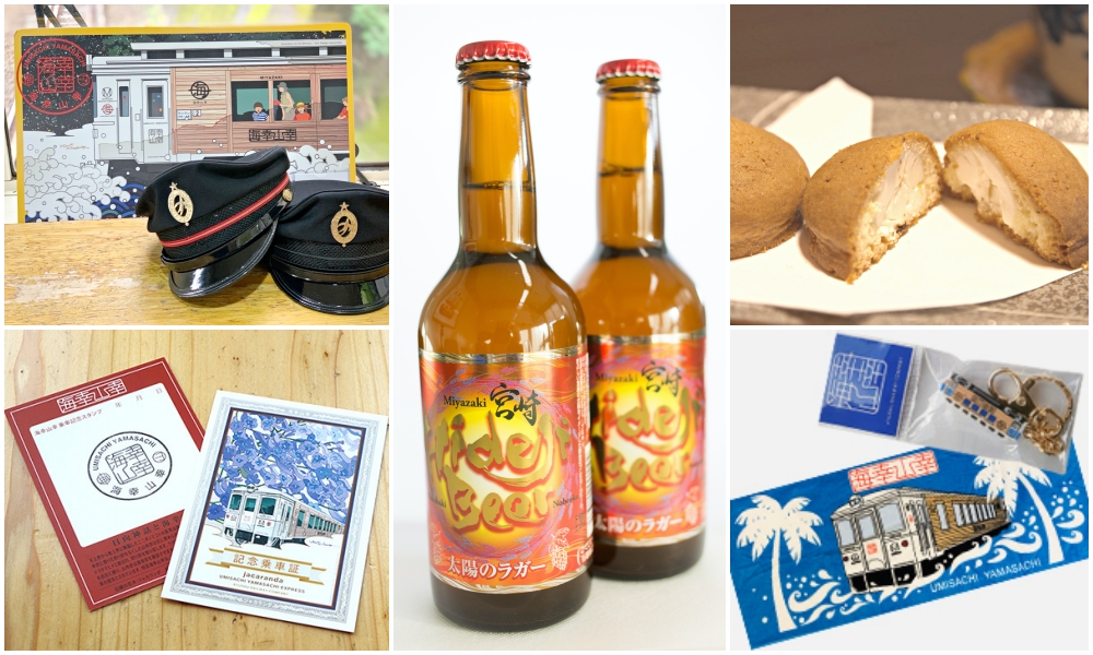 หากคุณหิวหรือกระหาย ต้องแน่ใจว่าได้ลองอาหารพิเศษอร่อยๆของมิยาซาคิ เช่น ขนมชีสมันจู(Cheese Manju チーズ饅頭) น้ำหวานโซดาไซเดอร์มะม่วงมิยาซาคิ (Miyazaki Mango Cider) และเบียร์ฮิเดจิ (Hideji Beer) ซึ่งมีขายบนรถไฟ และคุณก็สามารถซื้อสินค้ารุ่นพิเศษของ UMISACHI YAMASACHI อย่างเช่นผ้าขนหนูและสายโทรศัพท์มือถือ