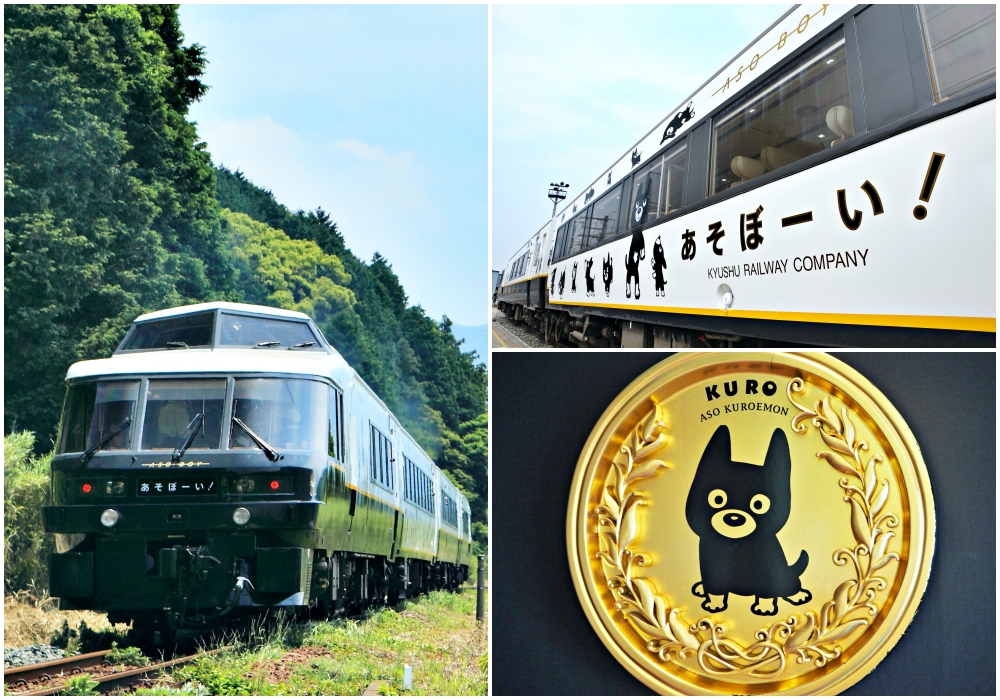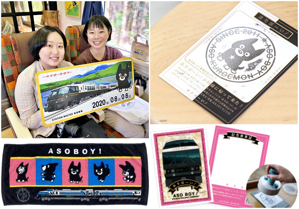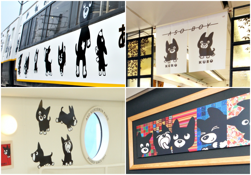 คุณทราบไหมว่า รถไฟ ASO BOY! มีกระทั่งมาสคอตเป็นของตัวเอง สุนัขสีดำน่ารักชื่อ อะโซคุโรเอมอน (Aso Kuroemon) หรือรู้จักกันในอีกนามว่า คุโรจัง (Kuro-chan)