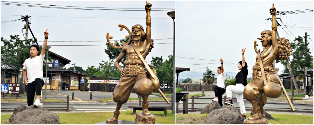 คุณเป็นแฟนผู้ชื่นชอบการ์ตูนเรื่องยาวที่เป็นที่นิยมทั้งเป็นการ์ตูนและอนิเมะวันพีซหรือไม่? คุณทราบหรือไม่ว่านักเขียนคุณ โอดะ เออิจิโร่ (Oda Eiichiro) เกิดในจังหวัดคุมาโมโตะ หลังจากแผ่นดินไหวคุมาโมโตะ 2016 ที่ซึ่งทำให้ส่วนใหญ่ของจังหวัดเสียหายอย่างรุนแรง คุณโอดะได้ร่วมกับทางจังหวัดคุมาโมโตะเพื่อเป็นความพยายามฟื้นฟูการท่องเที่ยวและโปรเจควันพีซฟื้นฟูคุมาโมโตะ ( One Piece Kumamoto Revival Project)ได้เริ่มขึ้น ด้วยเป็นส่วนหนึ่งของโปรเจคนี้ รูปปั้นตัวการ์ตูนชื่อดังจากเรื่องวันพีซ (ลูกเรือกลุ่มโจรสลัดหมวกฟาง) ถูกสร้างขึ้นรอบจังหวัดคุมาโมโตะ บริเวณนอกสถานี Aso (阿蘇駅) มีรูปปั้นอุซปหนึ่งตัว ถ้าคุณมีเวลาทำไมไม่โพสท่าและถ่ายรูปคู่กับอุซปก่อนที่คุณจะไปล่ะ?