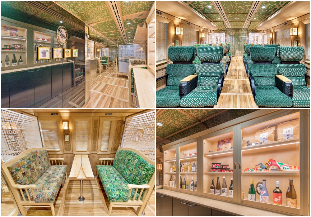 การตกแต่งภายในที่สวยสง่าของรถไฟ YUFUIN NO MORI (เครดิตภาพ: JR Kyushu)