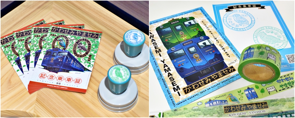 รถไฟ KAWASEMI YAMASEMI เป็นรถไฟร่วมสมัยของญี่ปุ่นประกอบไปด้วย 2 ตู้ หนึ่งตู้เป็นสีน้ำเงิน (KAWASEMI) และหนึ่งตู้เป็นสีเขียว (YAMASEMI) สีราวกับหยกดูสง่างามนี้ได้ถูกคัดเลือกเพื่อแสดงถึงสีน้ำเงินเป็นประกายของแม่น้ำคุมะและพืชพรรณเขียวชอุ่มของภูเขาในเขตนี้ ถ้าคุณสังเกตุอย่างใกล้ชิดคุณจะเห็นแต่ละตู้มีภาพของนกทั้งสอง