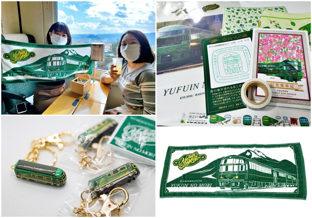 ก่อนที่คุณจะลงจากรถไฟ ซื้อของบางอย่างเพื่อเป็นที่ระลึกสำหรับการนั่งรถไฟของคุณไหม? ผู้โดยสารทุกท่านจะได้รับโปสการ์ดที่ระลึก ดังนั้นอย่าลืมประทับตราด้วยตราพิเศษซึ่งมีเพียงบนรถไฟเท่านั้น ยังมีสินค้าธีม YUFUIN NO MORI ขายอีกด้วย เช่น ผ้าขนหนู พวงกุญแจ แฟ้มพลาสติคใส่เอกสารขนาด A4 ผ้าห่อของฟุโรชิคิ (Furoshiki) ของเล่นโมเดลรถไฟและอื่นๆ ถ้าคุณเดินทางกับเด็ก มีแม้กระทั่งมุมถ่ายรูปที่ซึ่งเด็กๆสามารถลองสวมชุดและหมวกคนขับรถไฟ และถ่ายรูปที่ระลึกได้