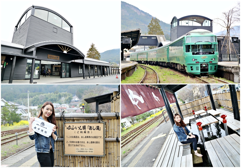 นักท่องเที่ยวส่วนใหญ่นั่งรถไฟ YUFUIN NO MORI เป็นไปได้มากไปยังหรือจากสถานี Yufuin สิ่งพิเศษบางอย่างสำหรับสถานีนี้ก็คือ ออนเซ็นเท้า (足湯 ashiyu) ซึ่งตั้งอยู่ตรงบนชานชลาสถานี ราคาตั๋วค่าบริการแช่เท้าเพียง 200 เยนและตั๋วสามารถซื้อได้ที่เคาร์เตอร์ขายตั๋ว ตั๋วมาพร้อมกับผ้าขนหนูผืนเล็กที่เอาไว้เช็ดเท้าให้แห้งและสามารถนำกลับไปบ้านเป็นของที่ระลึกได้ ด้วยตำแหน่งที่สะดวกทำไมคุณไม่แช่เท้าอย่างรวดเร็วเพื่อทำให้กระปรี้กระเปร่าจากความเหนื่อยล้า