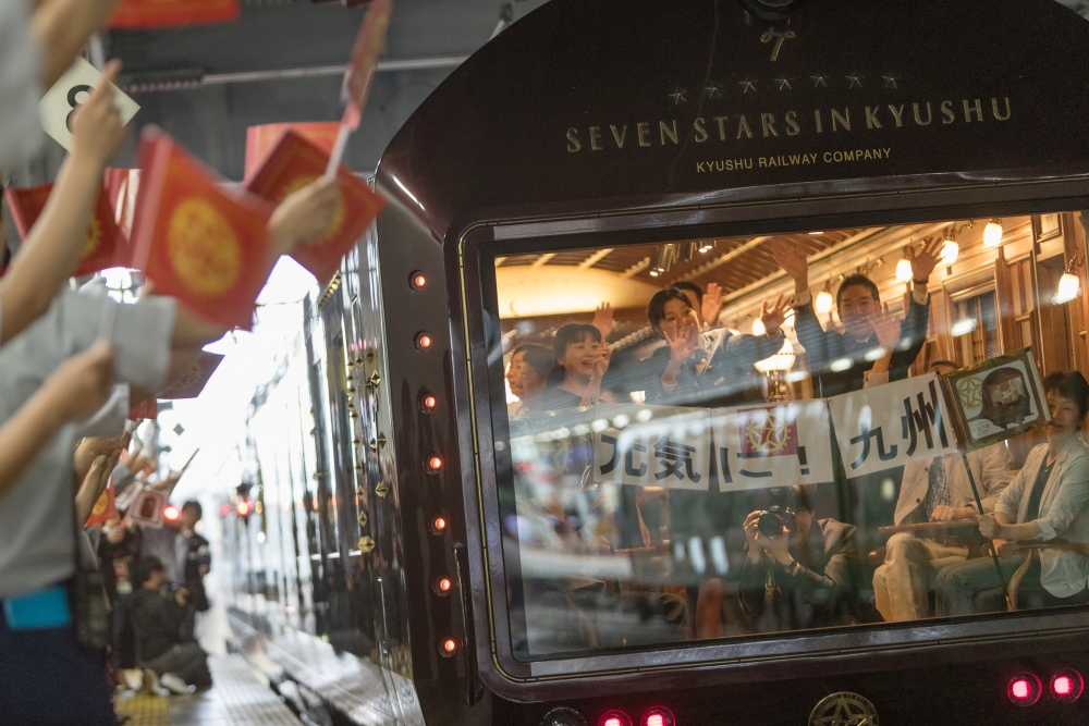 ทางตอนใต้ของภูมิภาคคิวชูมีรถไฟที่เป็นขบวนบุกเบิกรถไฟท่องเที่ยวหรูหราชื่อว่า Cruise Train Seven Stars in Kyushu (クルーズトレインななつ星in九州) ของ JR Kyushu รถไฟขบวนนี้ออกแบบโดยนักออกแบบอุตสาหกรรม เออิจิ มิโตโอกะ (Eiji Mitooka) และเริ่มวิ่งให้บริการในปี 2013 ชื่อ “Seven Stars in Kyushu” นั้นสื่อถึงจังหวัดทั้ง 7 ในภูมิภาคคิวชู, ตู้รถ 7 คันที่รวมกันเป็นรถไฟขบวนนี้ และจุดเด่น 7 อย่างของคิวชู ได้แก่ ธรรมชาติ อาหาร ออนเซ็น ประวัติศาสตร์/วัฒนธรรม เพาเวอร์สปอต มนุษยชาติ และรถไฟ