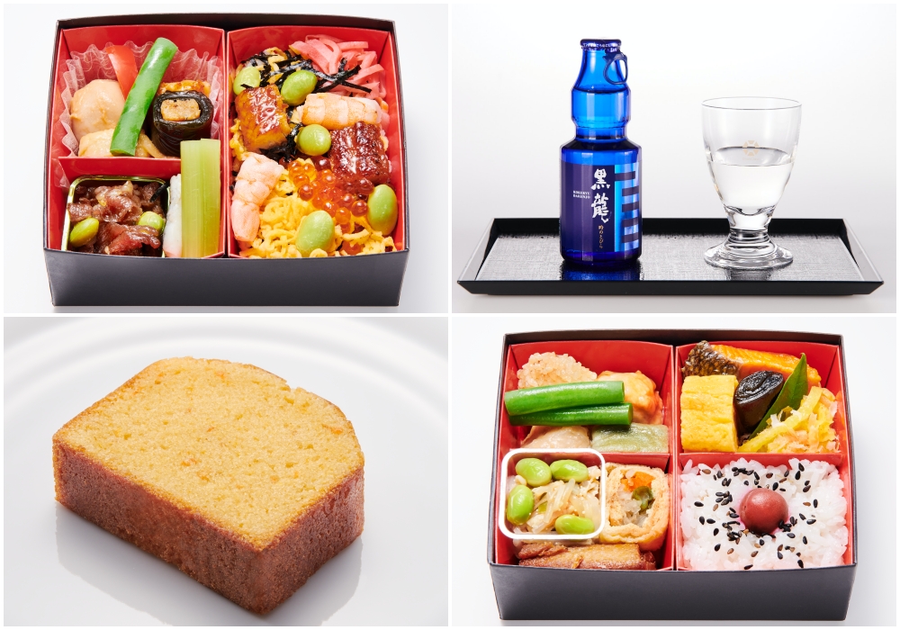 นอกจากเบนโตะแล้ว ยังมีเค้กปอนด์ แครกเกอร์ และเครื่องดื่มให้บริการอีกด้วย ผู้โดยสารสามารถเลือกเครื่องดื่มได้มากกว่า 10 รายการ ซึ่งรวมถึงชา กาแฟ น้ำแอปเปิ้ล และเครื่องดื่มแอลกอฮอล์นานาชนิด