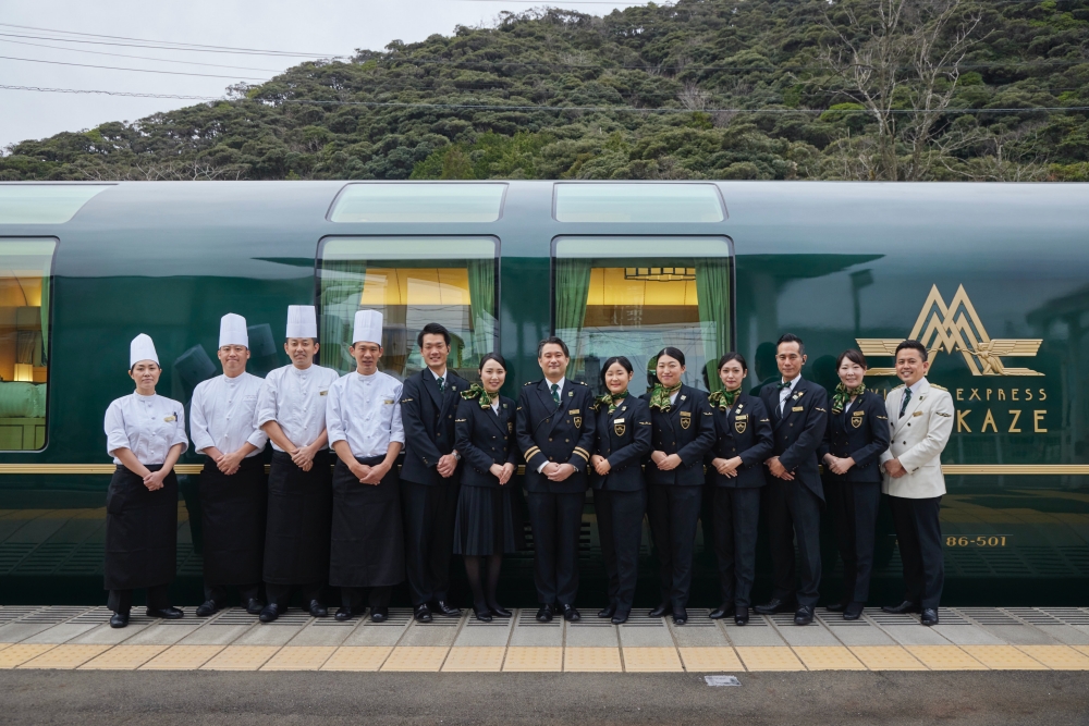 พนักงานและลูกเรือของ TWILIGHT EXPRESS MIZUKAZE (เครดิตรูปภาพ: JR West)
