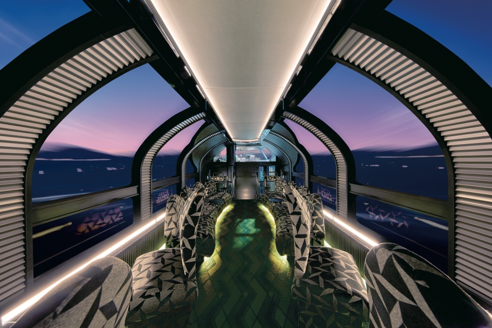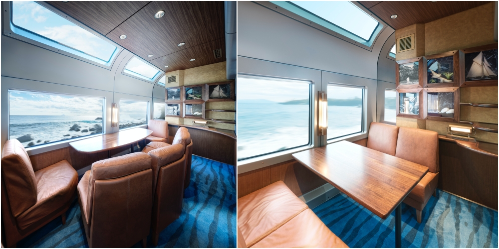 และสุดท้ายที่ตู้รถไฟคันที่ 1 และ 10 ซึ่งอยู่ปลายขบวนรถไฟทั้งสองฝั่งคือห้องชมวิวที่มีโซฟาหรูนั่งสบายหันหน้าออกหน้าต่าง พร้อมหน้าต่างที่สูงจากพื้นจรดเพดานยาวไปจนถึงเพดานของตู้รถไฟ ทำให้ผู้โดยสารได้ชมวิวอันตระการตา รวมถึงวิวของท้องฟ้าและดวงดาวในยามค่ำคืน