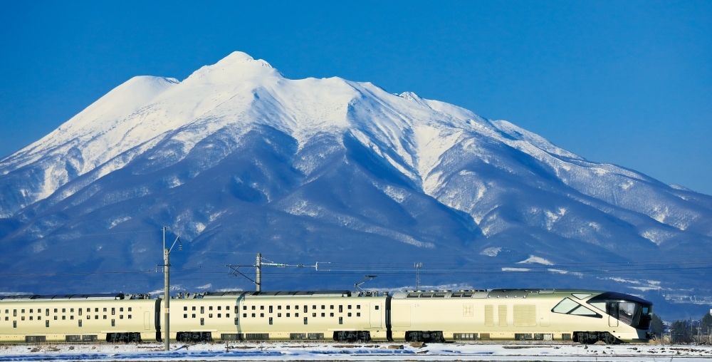 รถไฟ Train Suite Shiki-shima กำลังวิ่งผ่านภูเขาอิวากิ (เครดิตภาพ: JR East)