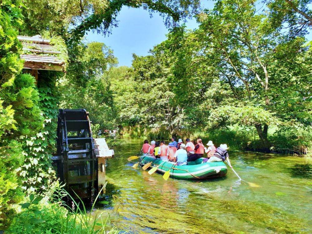 เรืออาซูมิโนะเคลียร์โบ๊ท (安曇野クリアーボート) เปิดให้บริการเฉพาะช่วงหน้าร้อนที่ฟาร์มไดโอวาซาบิ คุณสามารถผ่อนคลายไปกับการล่องเรือนาน 20 นาทีผ่านกังหันน้ำที่สวยงาม คุณสามารถจุ่มนิ้วมือและนิ้วเท้าลงไปในน้ำได้อย่างอิสระ และจะต้องทึ่งกับน้ำที่ทั้งใสแจ๋วแล้วก็เย็นฉ่ำเอามากๆ! ในวันที่แดดออก น้ำจะส่องประกายระยิบระยับเมื่อสะท้อนแสงอาทิตย์ราวกับเพชรพลอยเลยทีเดียว