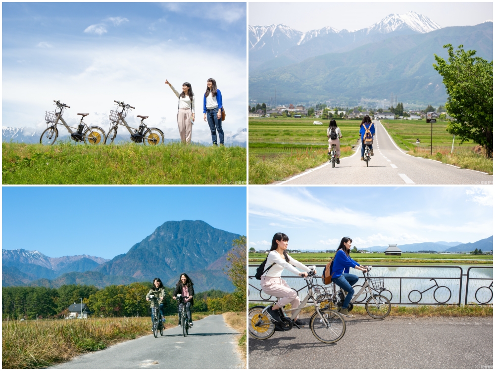 ถ้าคุณอยากจะเพลิดเพลินกับทิวทัศน์ของภูเขาจากพื้นดิน อีกวิธีดีๆ ในการสำรวจย่านชนบทที่สวยงามของนากาโนะก็คือการปั่นจักรยานค่ะ! ที่นี่มีจุดให้เช่าจักรยานมากมาย ไม่ว่าจะเป็นจักรยานธรรมดา จักรยานไฟฟ้า (e-bikes) หรือจักรยานเสือภูเขา นากาโนะมีสถานที่ที่น่าตื่นตาตื่นใจมากมายให้เราได้ปั่นจักรยานสำรวจ ในบทความนี้เราลองไปเที่ยวที่อาซูมิโนะ (安曇野) และอียามะ (飯山) สองแห่งนี้กันค่ะ