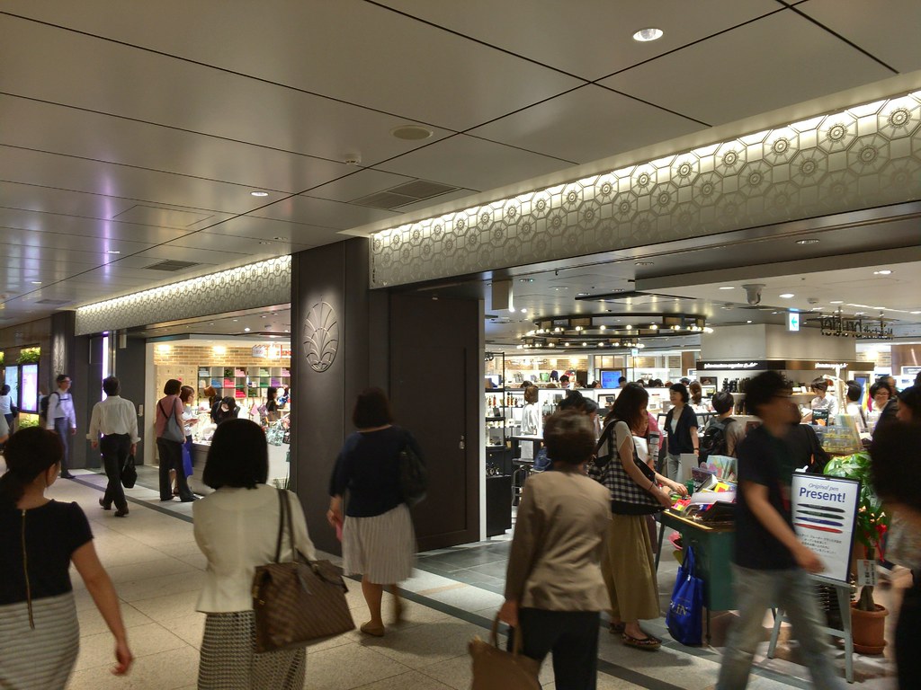 ความพิเศษของสถานีรถไฟไม่ได้มีแค่การตกแต่งภายนอกเท่านั้น เพราะในอาคารสถานีรถไฟคุณมักจะได้เจอแหล่งขุมทรัพย์อีกมาก ซึ่งมาในลักษณะของเอกินากะ (エキナカ ekinaka) ศูนย์การค้าที่ตั้งอยู่ภายในสถานีรถไฟ การที่เราสามารถหาของกิน ช้อปปิ้ง และซื้อของฝากภายในสถานีรถไฟได้โดยไม่ต้องออกไปนอกประตูสถานีรถไฟนั้นถือเป็นสิ่งที่แปลกใหม่มากสำหรับฉัน ที่สิงคโปร์นั้น ร้านค้าทั้งหมดจะตั้งอยู่นอกประตูสถานีรถไฟ ดังนั้นเราจึงไม่สามารถเดินช้อปปิ้งไปพลางระหว่างรอขบวนรถไฟมาถึงได้