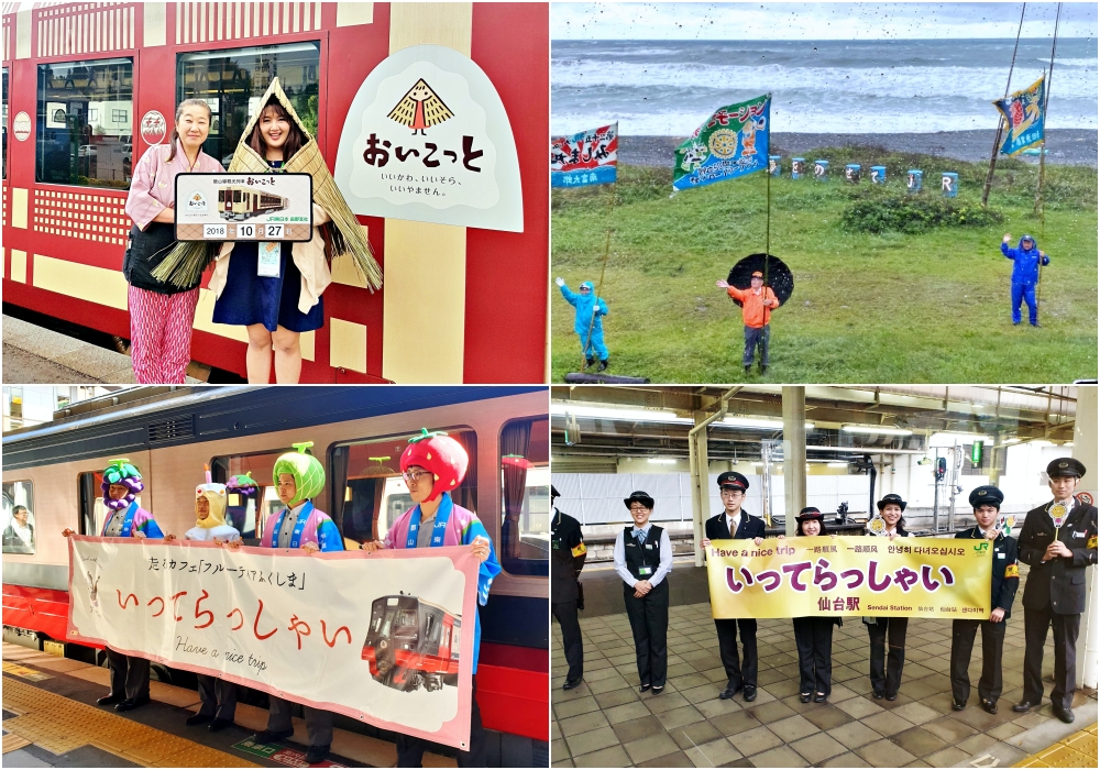 เมื่อนั่งรถไฟในญี่ปุ่น เวลาที่ฉันเห็นพนักงานสถานีรถไฟโบกมือให้กับรถไฟที่ผ่านไปมาพร้อมป้ายที่เขียนว่า “ยินดีต้อนรับสู่สถานี XXX !” หรือ “ขอให้เดินทางสนุก!!” ทีไร ฉันก็รู้สึกทั้งตื่นเต้นและมีความสุขทุกครั้ง อย่างหนึ่งที่ฉันจะไม่มีวันลืมเลยคือภาพคนทั่วไปกลุ่มหนึ่งที่ยืนโบกมือให้กับรถไฟท้องถิ่นที่วิ่งผ่านนาข้าวของพวกเขาไป หรือภาพบรรดาธงของชาวประมงสีสันสดใสที่เห็นได้ตามชายฝั่งซันริคุระหว่างที่นั่งรถไฟ TOHOKU EMOTION