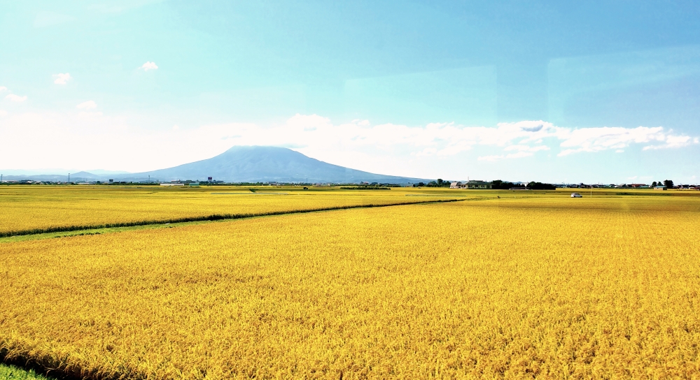 วิวนาข้าวและเขาอิวากิจากบนรถไฟ Resort Shirakami (เครดิตรูปภาพ: JR East / Carissa Loh)