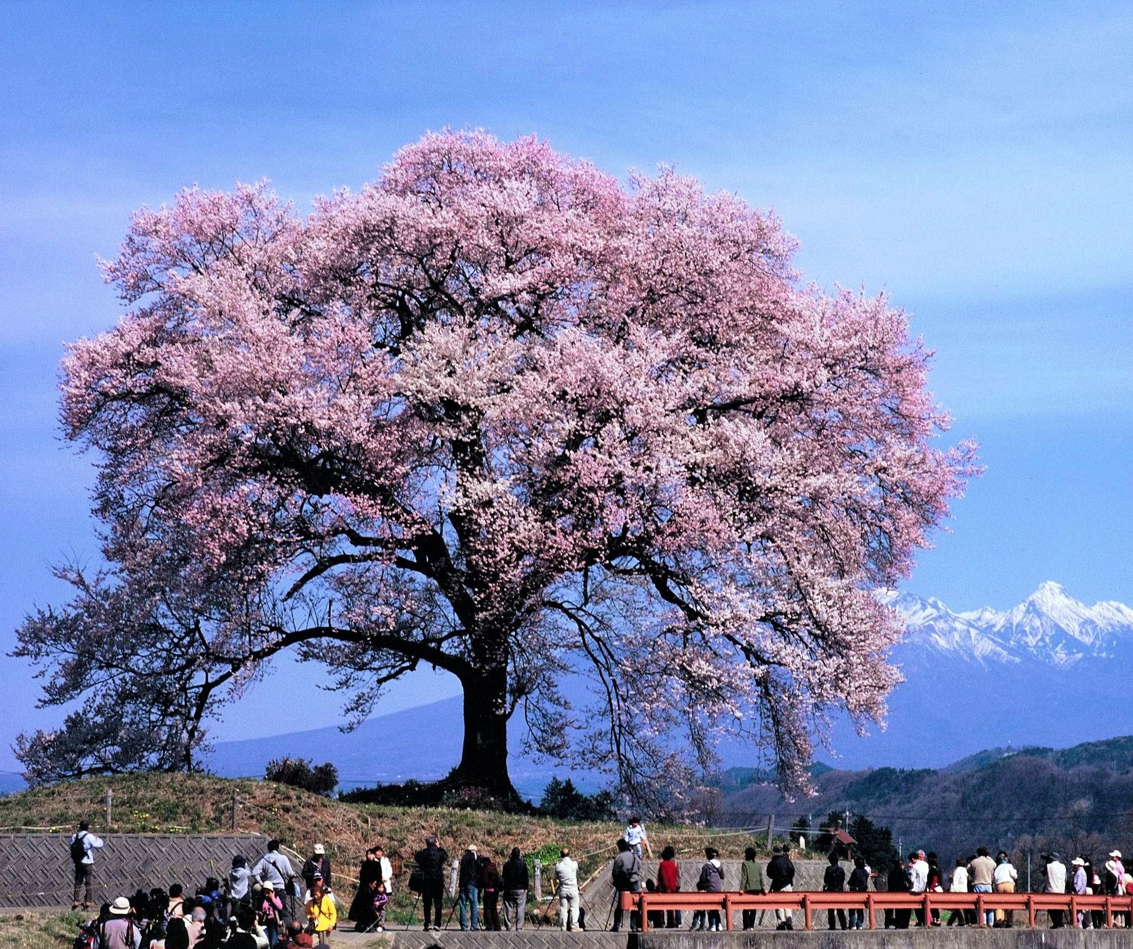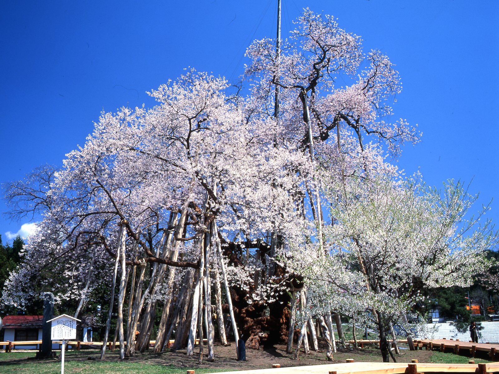 สิ่งที่โดดเด่นของต้นซากุระนี้ก็คือบริเวณรอบข้าง ในวันที่ท้องฟ้าสดใส สามารถเห็นภูเขายัตสึกะทาเคะ (八ヶ岳連峰 Yatsugatake-renpo) ได้ในระยะไกลและเป็นพื้นหลังที่สมบูรณ์แบบสำหรับต้นไม้ที่น่าทึ่งอยู่แล้ว บางทีประสบการณ์อย่างที่วิเศษนั้นคือการชมต้นซากุระนี้หลังพระอาทิตย์ตกดิน เมื่อมันถูกส่องแสงด้วยสปอตไลท์ภายใต้ท้องฟ้ากลางคืนที่เต็มไปด้วยดวงดาว