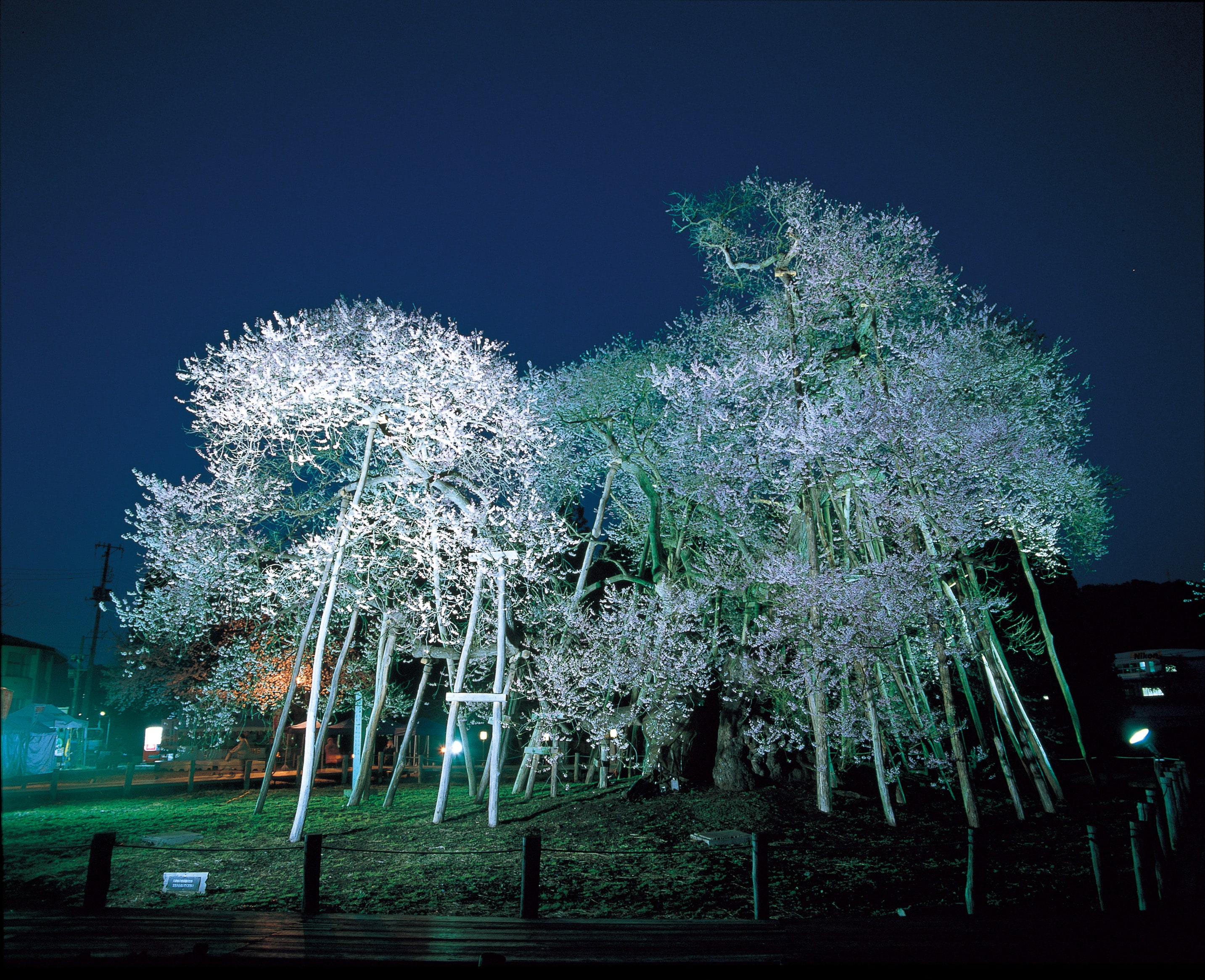 วานิทสึคะโนะซากุระในตอนกลางคืน (เครดิตภาพ: 韮崎市観光協会)