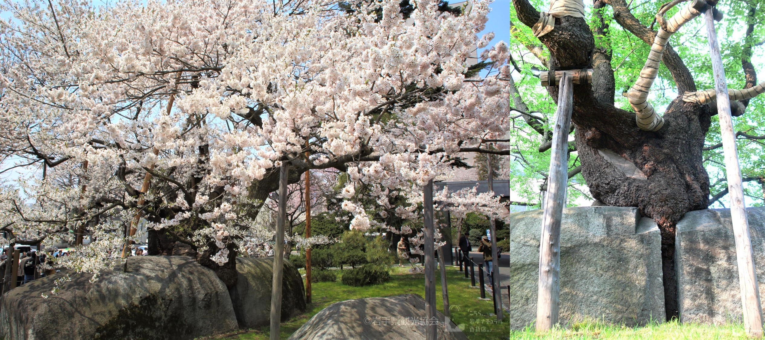 อิชิวะริซากุระ (ซ้าย) และลำต้นของซากุระที่ผ่าแตกแยกหิน (ขวา) (เครดิตภาพ: 岩手県観光協会)