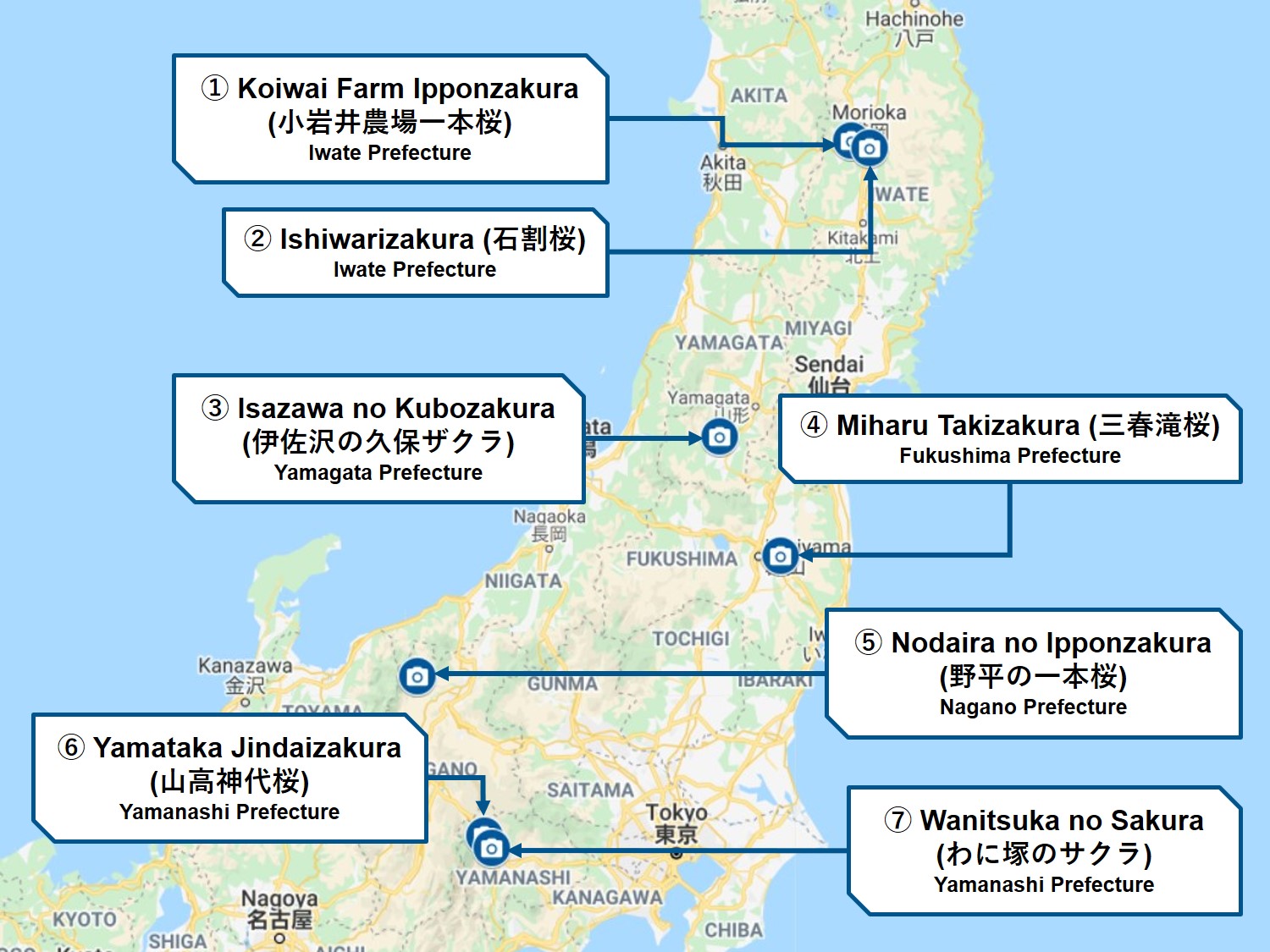 ตำแหน่งที่ตั้งซากุระต้นเดี่ยวในภาคตะวันออกของญี่ปุ่น (เครดิตภาพ: Google Maps)