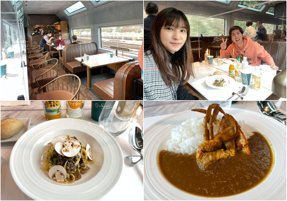 เริ่มหิวกันแล้ว? มาต่อกันที่ตู้รถคันที่ 4 ที่มีห้องอาหารกันเลย ณ ห้องอาหารที่มีครัวแบบเปิด (Open Kitchen) นี้ ผู้โดยสารสามารถอิ่มอร่อยไปกับอาหารมื้อเบาๆ เช่น พาสต้าปรุงใหม่ๆ และแกงกะหรี่รสเลิศได้ ปัจจุบันอาหารที่เสิร์ฟเป็นเมนูที่คัดเลือกเป็นพิเศษโดยเชฟฮอนดะ เท็ตสึยะ (Honda Tetsuya) จากร้านอาหารอิตาเลียน Ristorante HONDA ที่ได้รับดาวมิชลิน 1 ดาวมาแล้วมากถึง 14 ครั้ง