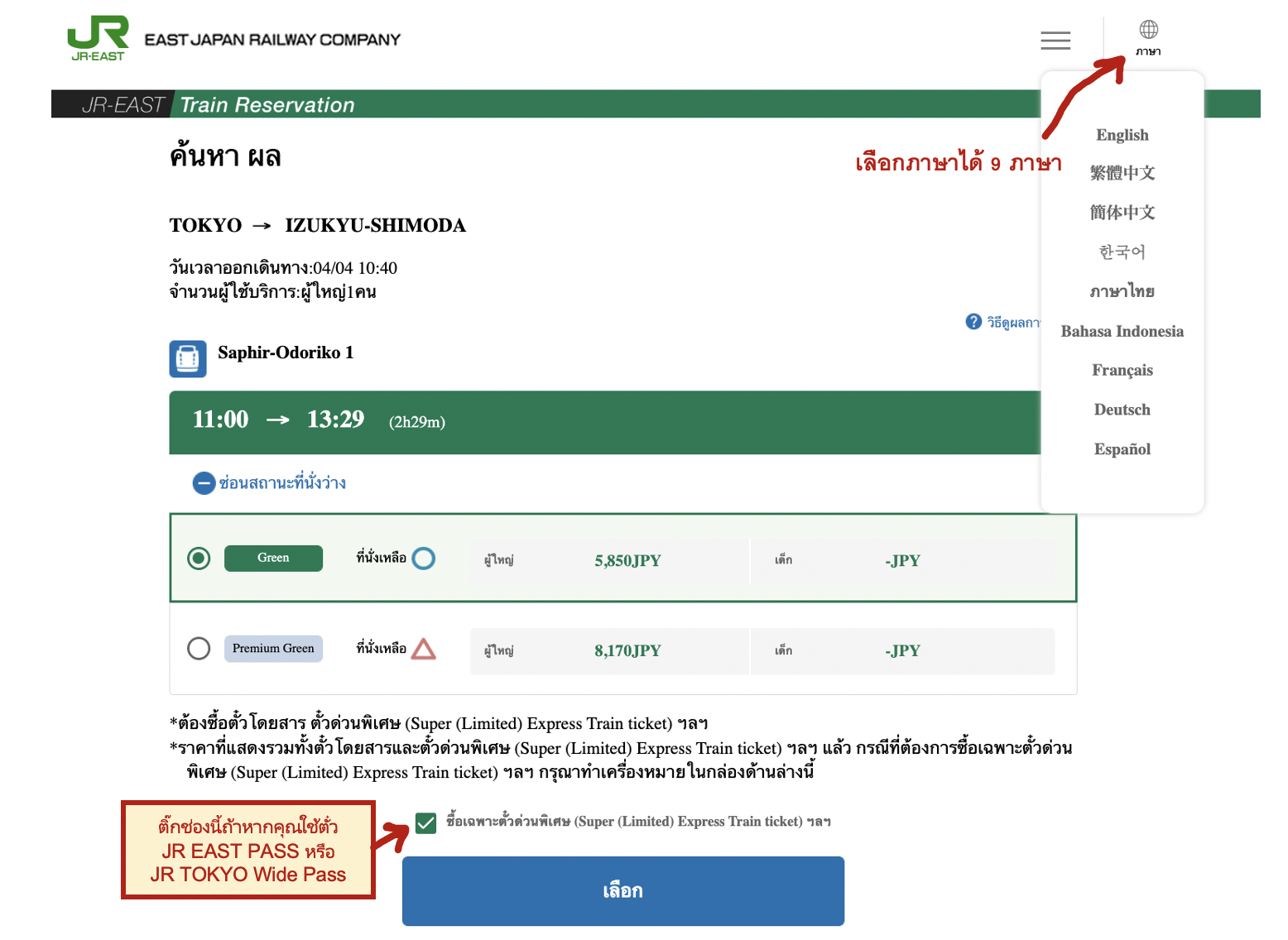 - แบบออนไลน์ผ่านเว็บไซต์ JR-EAST Train Reservation