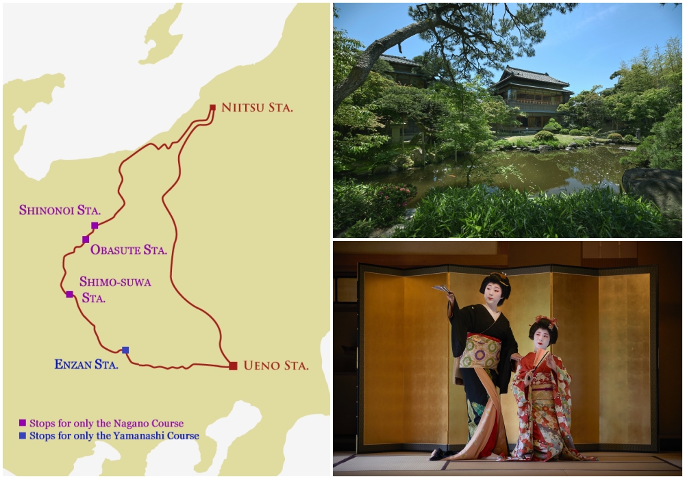 มีสองคอร์สคือ คอร์สยามะนาชิ ซึ่งให้บริการในเดือนเมษายน พฤษภาคม ตุลาคมและพฤศจิกายน และคอร์สนากาโน่ ซึ่งให้บริการตั้งแต่เดือนมิถุนายนถึงกันยายน ทั้งสองคอร์สวันแรกจะออกเดินทางจากสถานีอุเอโนะไปยังสถานี Niitsu ในจังหวัดนีกาตะ ที่สถานี Niitsu แขกจะได้ไปโปรแกรมท่องเที่ยวสั้นๆในเมืองนีกาตะเมืองท่าประวัติศาสตร์ตั้งอยู่บนเส้นทางเดินเรือคิตะมาเอะบุเนะ (Kitamaebune) เส้นทางสำคัญในยุคเอโดะ (1603-1868)