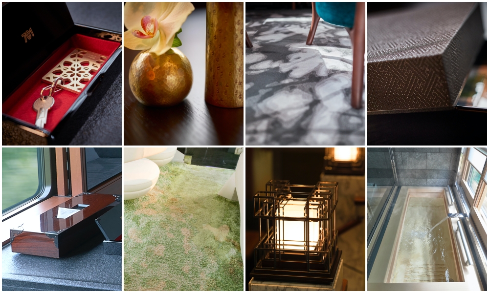 - เซนไดทันสุ (仙台箪笥) จากจังหวัดมิยางิ: ห้องพัก Shiki-shima Suite และ Deluxe Suite จะมีกล่องทิชชู่ที่ทำด้วยเทคนิคเซนไดทันสุซึ่งไม้เซลโคว่าญี่ปุ่นจะถูกเคลือบด้วยแลคเกอร์ใสและฉลุลายโดยเครื่องโลหะอย่างสลับซับซ้อน