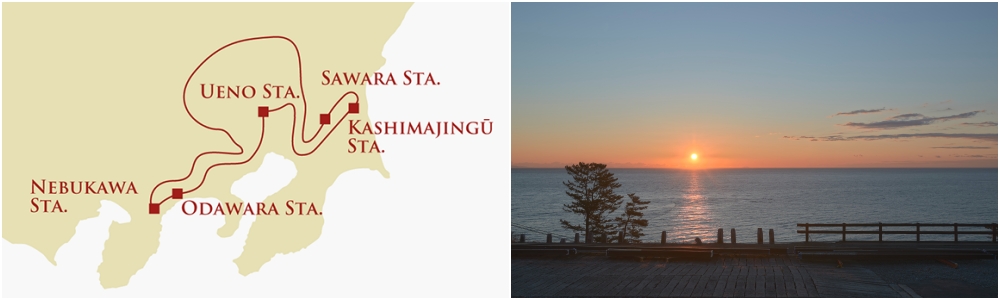 ระหว่างกลางคืนรถไฟมุ่งหน้าไปยังจังหวัดคานากาว่า แสงพระอาทิตย์ขึ้นยามเช้าตรู่ในวันที่สองแขกสามารถเพลิดเพลินไปกับพระอาทิตย์ขึ้นที่สถานี Nebukawa จากบนรถไฟหรือจากชานชลาก็ได้ โปรแกรมท่องเที่ยวสั้นๆจะพาแขกไปรอบๆโอดะวาระก่อนที่จะมุ่งหน้ากลับสถานี Ueno ในตอนบ่าย