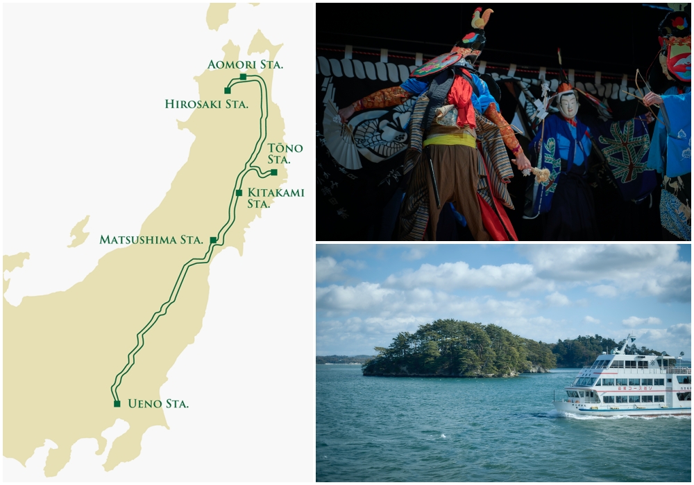 รถไฟเริ่มออกเดินทางจากสถานี Ueno มุ่งหน้าสู่โทโนะในจังหวัดอิวาเทะที่ซึ่งมีชื่อเสียงเกี่ยวกับตำนานพื้นเมือง แขกจะเดินทางท่องเที่ยวโปรแกรมสั้นๆเพื่อชมการแสดงคากุระที่โทโนะและทานอาหารเย็นที่ร้านอาหารท้องถิ่นก่อนที่จะกลับมานอนพักบนรถไฟ