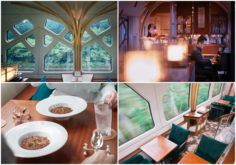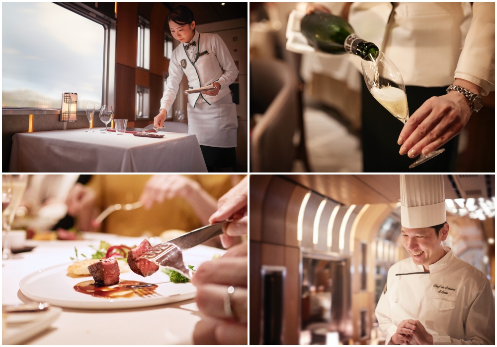 นอกจากอาหารฝรั่งเศสที่น่ารื่นรมย์โดยหัวหน้าเชฟคุณ Sato Shigeru ยังมีเชฟจากร้านอาหารชื่อดังที่อยู่ระหว่างเส้นทางรถไฟก็จะขึ้นมาบนรถไฟจากจุดหยุดรถและเสริฟ์อาหารของพวกเขาบนรถไฟ และบางมื้อแขกจะลงจากรถไฟและทานอาหารที่ร้านอาหาร