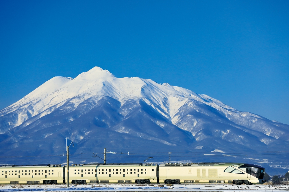 Train Suite Shiki-shima กับพื้นหลังภูเขาอิวาคิ (เครดิตภาพ: JR East)